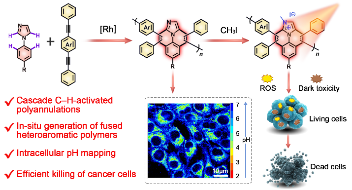 l进展一:基于新型级联C‒H活化/环化聚合制备可用于细胞内pH测定与癌细胞杀伤的新型稠杂环荧光功能聚合物