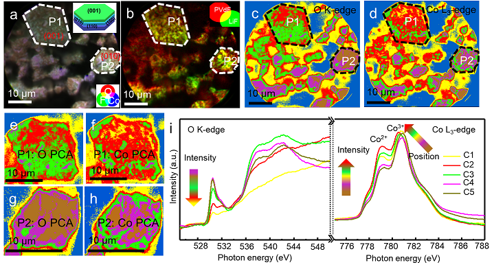 图1 过锂化Li1+xCoO2电极的X-PEEM成像及空间分布的XANES分析