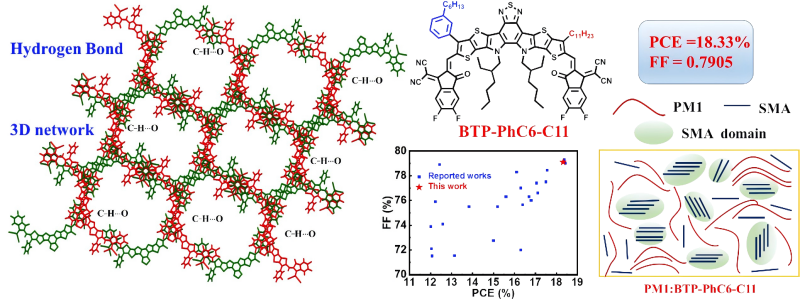 进展二:非对称侧链取代构筑氢键辅助的3D网络受体助力高效有机光伏电池