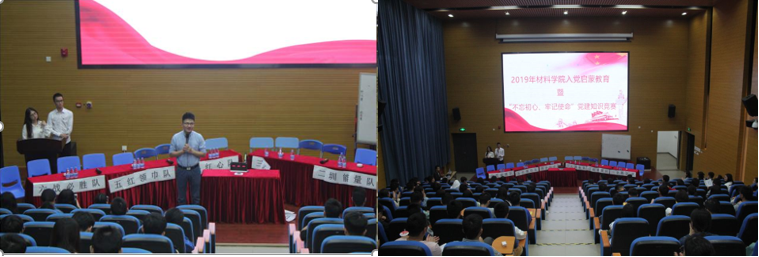 为深入学习贯彻习近平新时代中国特色社会主义思想,结合材料学院党委“不忘初心、牢记使命”主题教育工作安排,材料学院党群服务队于2019年11月22日晚,在深圳大学丽湖校区A5报告厅举行2019年材料学院入党启蒙教育暨“不忘初心、牢记使命”党建知识竞赛活动。学院党委副书记曾永乐老师、党务秘书胡佳妮老师、党建组织员林玉冰老师及学生党员、入党申请人等参加了本次活动。