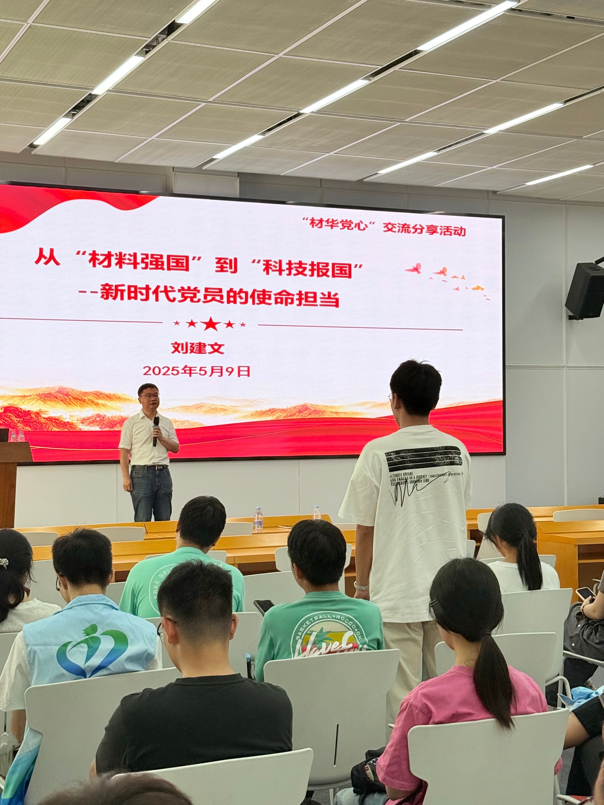 谈及新时代 “材子材女” 党员的使命担当,刘建文老师提出五点期望:一要勇挑科研重担,聚焦关键材料领域的国家战略课题;二要推动技术创新,不断优化材料性能与制备工艺;三要引领科研方向,关注国际前沿并开展前瞻性研究;四要参与社会服务,运用专业知识服务社会;五要弘扬科学精神,积极传播材料科学知识,提升公众科学素养。