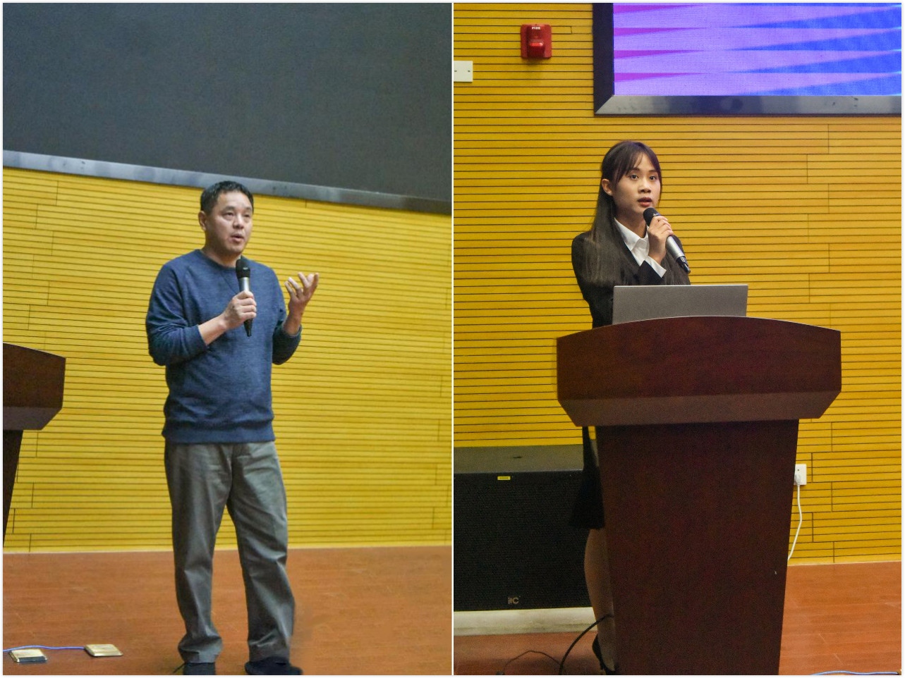 最后,本次宣讲会还邀请了金相大赛国赛一等奖获得者张丽同学、“挑战杯”校赛二等奖获奖队伍负责人陈泓江同学到场与同学们分享参赛经验,分享他们在目标确定、集训备赛、技能准备、科创点子、心理调节等各方面的经验。