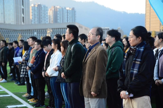 12月17日清晨,材料学院于西丽田径场举行了升旗仪式。本次升旗仪式以“乘风新时代,奋进新征程“为主题,材料学院全体学生参加升旗仪式,党委书记曾燮榕教授、党委副书记黄佳老师、团委书记张艺婷、研究生辅导员庄俊城出席。