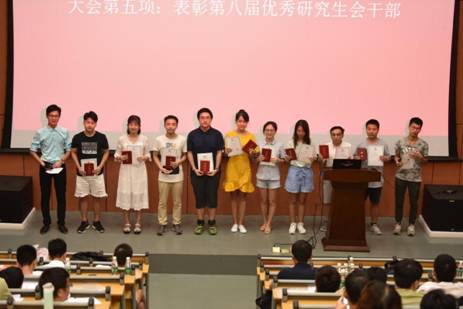 庄俊城老师代表学院对研会去年的工作表示肯定并勉励以后要更好的服务同学。研究生会主席彭淼做第八届研究生会年度工作报告,回顾了过去一年研究生会的各项活动和工作,总结了主要成绩和不足,并对下一阶段的工作提出宝贵建议。大会对第八届研究生会成员颁发聘书,并表彰了第八届优秀研究生会干部。