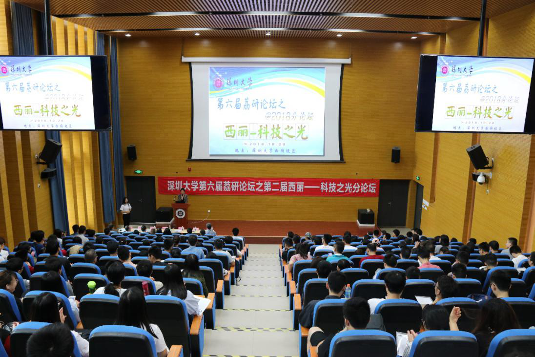 2018年10月20日,第六届深圳大学“荔研论坛--西丽校区分论坛”在我校西丽校区举行。本届论坛以“西丽--科技之光”为主题,由深圳大学西丽校区材料学院、生命与海洋科学学院、化学与环境工程学院和医学部联合举办。