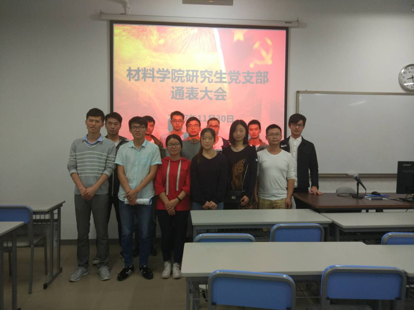 2017年11月30日晚7点,西丽校区教学楼A6-203室,深圳大学材料学院研究生党支部顺利召开了本学年的预备党员转正与接收通表大会。