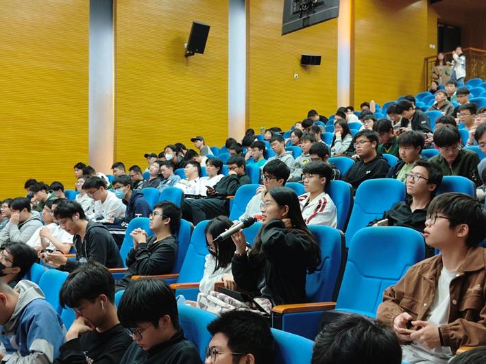 互动交流环节中,同学们积极踊跃发言,询问了关于专业科目选择、研究方向的选择、报考不同院校的优势和劣势等实际问题,3位校友结合自身经历具体分析,耐心解答,给予同学们诸多建议,在场同学纷纷表示受益匪浅。