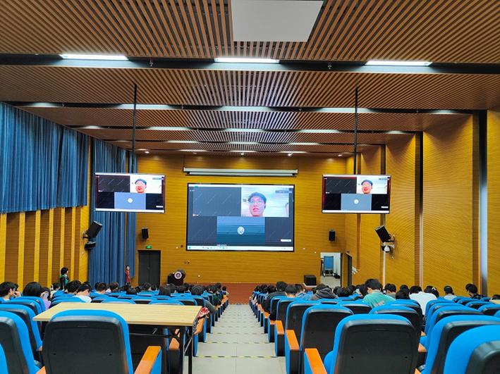 随后是校友分享环节。张伟浩校友分享了自己选择考研升学的备考历程,从院校选择、笔试经验、复习时间安排等方面进行了介绍。他建议同学们,要及时了解考研最新动向,保持良好心态,把握节奏,适当放松。马展涛校友谈到了考研的意义、择校事项和时间规划等方面。建议同学们要明确目标,不要随大流而选择考研,同时要在紧张的复习中合理安排休息,保证拥有良好的身体。韦帆校友从职业发展、学术兴趣和时间精力三个方面引导同学们思考“我该考研吗”这个问题,我们要根据个人的情况和目标来做出明智的选择。