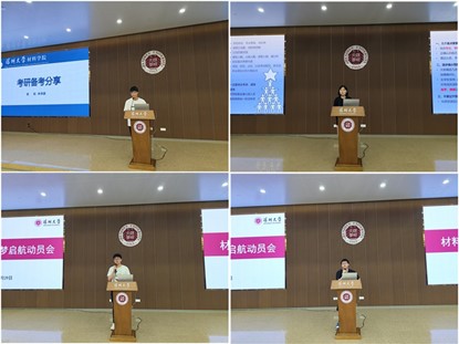 随后,胡利鹏从“本班考研情况”、“为什么选材料专业”、“为什么考研”以及“怎么考研”这四个方面展开分享。他鼓励同学们要明确目标方向,培养终身学习的能力,坚定信心、脚踏实地,为实现人生梦想而不懈奋斗,同时也要学会缓解压力和焦虑,保持乐观良好的心态。