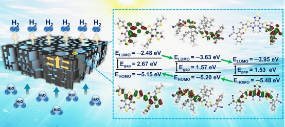 成果二:基于光敏材料分子尺度的梯度能级排列,并结合具有微纳米尺度的分级孔结构的超浸润木质纤维基底,构建了一种新型的多尺度层级结构的有机光催化制氢平台。与传统的给体-受体体系相比,该三元体系促进了电荷转移并增强了光催化活性。同时,该平台的润湿层级孔结构界面赋予了其反复捕获光能和在水面下自悬浮的能力,从而同时提高了光利用效率并减少了盐沉积,展现出良好的耐久性。在氙灯照射下,该有机催化平台在牺牲剂存在时的析氢速率达到165.8 mmol h−1m−2,超过了大多数报道的无机系统。在构建的可规模化系统上(1600 cm2),该平台在连续五小时的日照内(正午时段)从海水中产生了80.6 ml m−2的氢气。更重要的是,这种跨学科的创新方法,涵盖了分子和微纳结构两个层面,为光催化制氢向真正应用导向型发展提供了方向。文章信息:Zhu J., Dang J., Xiao H., Wang Y., Ding L., Zheng J., Chen J., Zhang J., Wang X., Xin H. J., Chen S.,Wang Y.*Multi-scale Hierarchical Organic Solar Catalytic Platform for Self-Suspending Sacrificial Hydrogen Production from Seawater.Angew. Chem.2024, 2412794.