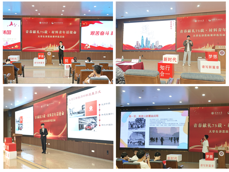 活动现场,各团队的主讲人以独特的视角和生动的语言,阐述着材料相关领域的发展情况以及个人对其中蕴含的思政理论的理解。他们结合时事热点、科研案例和个人经历,将原本抽象的思政概念变得具体而生动。有的团队通过讲述改革开放以来深圳市及大湾区新材料发展的战略规划、重大成就等,激励同学们要深入学习专业知识,提升实践创新能力;有的团队介绍了新能源材料产业发展现状,不仅结合了深圳市新能源企业的实际情况,还融入了我院相关课题组的研究成果,展示了在国家政策的有力支持下,新能源材料产业如何展现出强劲的增长潜力和市场竞争力;还有的团队从绿色发展的角度阐述国家的双碳政策,介绍建设生态文明的相关措施,呼吁青年学生共同参与环保建设。这些精彩的讲述不仅让台下的同学们听得聚精会神,也赢得了阵阵热烈的掌声。大家纷纷表示,这种由同龄人来讲授思政课的方式,更贴近生活,更容易产生共鸣,也让他们对思政课有了全新的认识和兴趣。