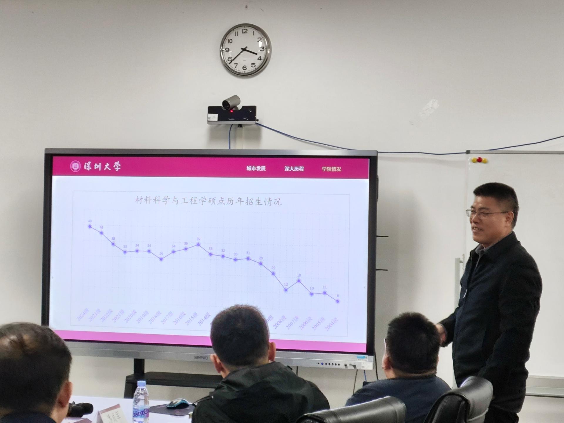 王东副院长对韩山师范学院材料科学与工程学院一行的到访表示热烈欢迎。王东副院长就深圳大学材料学院的建院及发展历程、师资队伍情况、科研发展状况、研究方向、然采培养等内容向来访老师进行了详细介绍与分享。张文星副院长表示非常期待与深圳大学材料学院进行更深入的交流,同时就以上内容与参会老师进行了深入探讨。