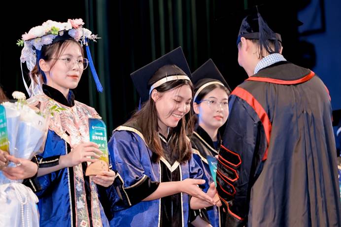 胡利鹏副院长宣读了《材料学院2025届优秀毕业研究生表彰决定》和《材料学院2025届优秀本科毕业生表彰决定》。王雷院长、朱德亮副院长、陈小强副院长和李小平副书记为优秀毕业生们颁发了荣誉证书。