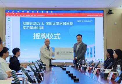 2025年11月28日上午,深圳大学材料学院党委副书记李小平率队前往欣旺达动力科技股份有限公司(简称“欣旺达动力”)开展“访企拓岗促就业专项行动”暨“深圳大学实习基地”授牌仪式。欣旺达动力人力资源总监沈晓杰、动力电池工艺开发部总监葛金波、人力资源部校招负责人刘海萍、李伟鸿、项冬喜等企业代表热情接待;材料学院材料科学与工程系副主任刘建文,辅导员吴端阳、李书恒、刘莹及25名学生代表共同参与此次活动。
