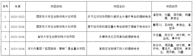项目作品:阻燃的交联聚合物构筑高容量长寿命自熄灭锂电池(创新)、安欣锂能——全球首创自熄灭电池技术(创业)