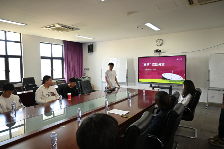 随后,连续两年担任寒招队长的何应锋同学分享了他在寒招工作中的宝贵经验。他从自己的亲身经历出发,为新一届“寒招”队员们提供了许多实用的建议,包括物资准备、与母校沟通、日程安排等多个方面,为新队员们提供了宝贵的参考和启示。