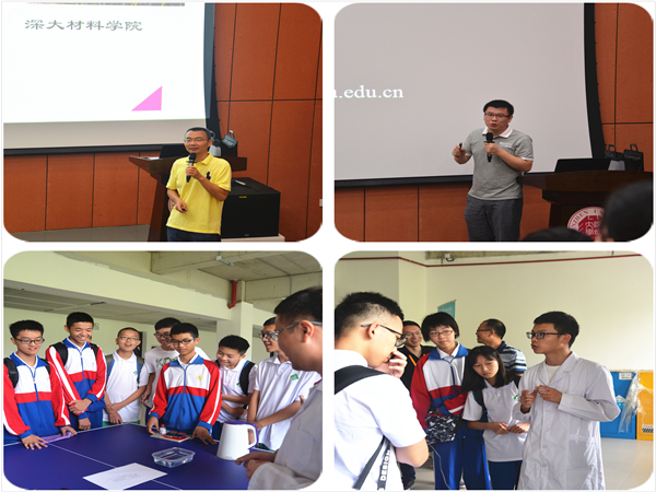 首先,柳文军副院长向肇庆中学的师生介绍了什么是材料?什么是新材料?新材料的发展前景和人才需求,然后介绍了材料学院的发展历史、学科设置、师资力量、科研团队、人才培养及毕业生情况等。接着,学院的刘斌博士给同学们带来了一场关于“神奇材料在哪里”的精彩演讲,让师生感受到“分子材料”、“记忆材料”、“催化材料”、“超材料”、“医用材料”等材料的神奇之处、带领他们领略前沿科技成果和未来材料的发展方向。
