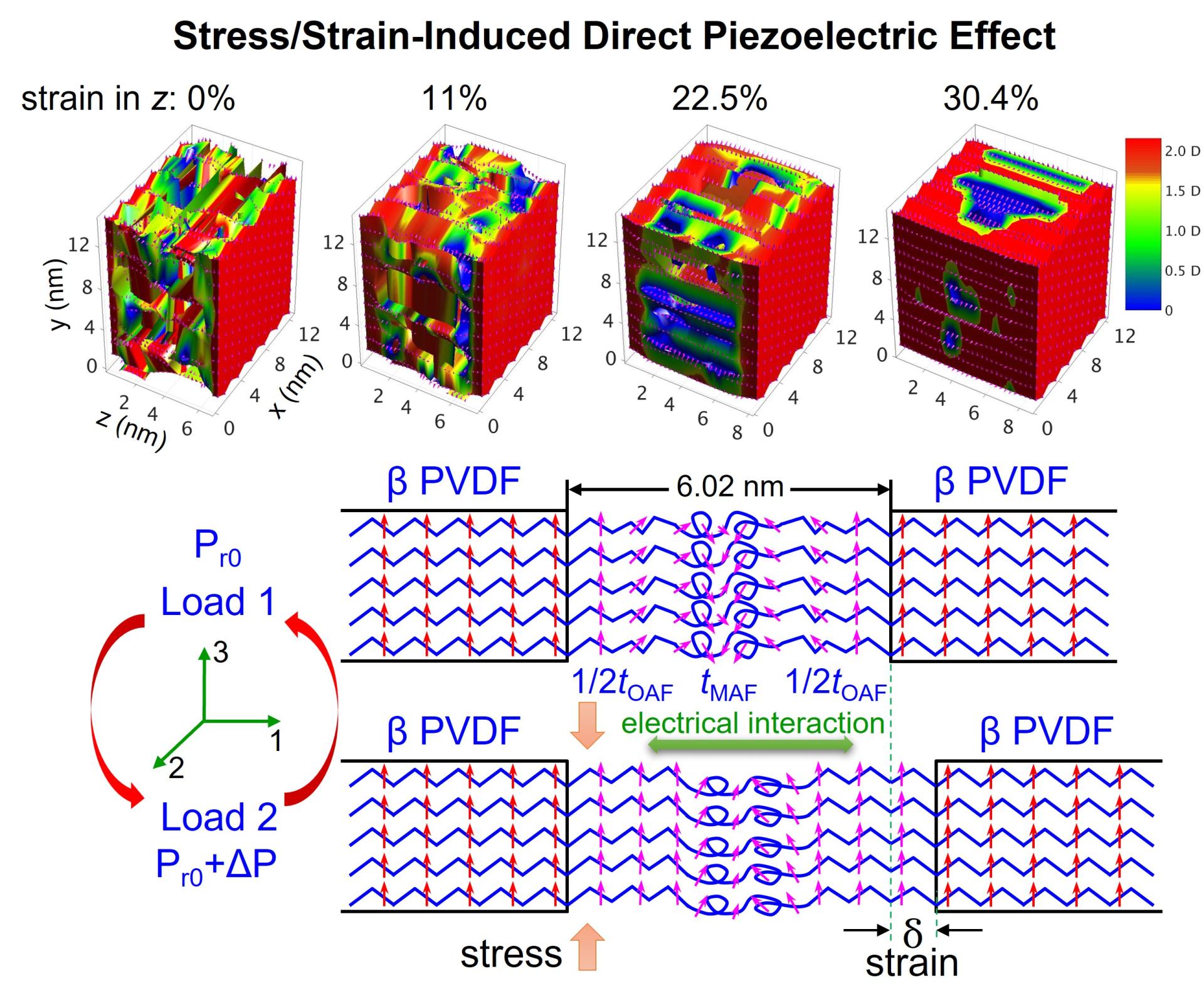 The oriented amorphous phase (OAF) located in the crystalline-amorphous interface endows the electrically poled and biaxially oriented poly(vinylidene fluoride) (BOPVDF) with pure β crystals with a high piezoelectric constant of -62 pC/N.