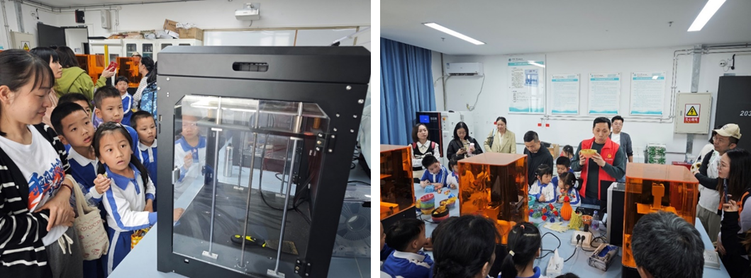 In Laboratory 203, Mr. Zeng Yuxiang introduced the students to the principles and applications of 3D printing. He demonstrated how this technology transforms creative ideas into tangible objects and gifted the children small 3D-printed souvenirs, sparking their strong interest in technology.