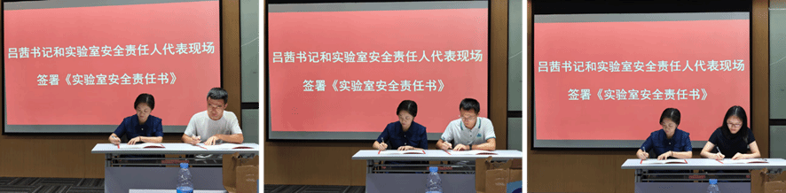 To conclude the meeting, Party Secretary Lv Qian and the representative safety officers formally signed the Laboratory Safety Responsibility Agreements on site, with all designated laboratory safety officers subsequently completing the signing process.