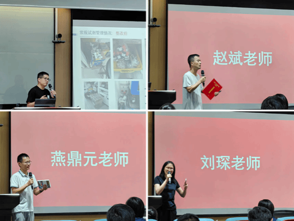 Following this, teachers Zou Yang, Zhao Bin, Yan Dingyuan, and Liu Chen, representing the laboratory safety officers, shared their practical management experiences tailored to their respective laboratories' contexts. Teacher Zou Yang demonstrated the effectiveness of a new "Human & Technological Defense" model by implementing an intelligent management system for hazardous chemicals, showcasing clear improvements before and after its adoption. Teacher Zhao Bin emphasized that faculty members are the cornerstone of laboratory safety management, stating that their prioritization of safety is crucial for fostering student awareness and implementing risk management at the source. Teacher Yan Dingyuan advocated for making safety practices routine and systematic, integrating attention to detail into daily research activities. Using his own lab as an example, Teacher Liu Chen stressed the importance of leading by example—prioritizing safety in both mindset and action—to effectively mentor students and encourage their active participation in maintaining laboratory safety.