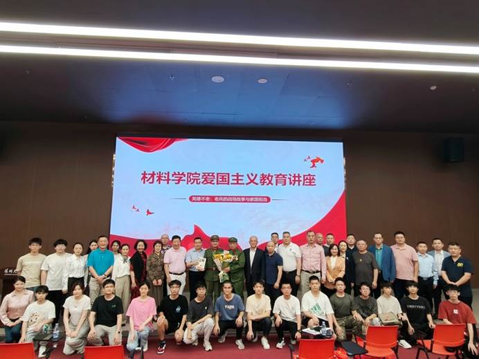 To deeply carry forward the red gene and cultivate students' patriotic feelings, on the evening of April 16th, the School of Materials Science and Engineering held a profound patriotic education lecture in the C101 Lecture Hall of the library at Lihu Campus. This lecture specially invited two veterans who participated in the Self-Defense counterattack against Vietnam to share battlefield stories with teachers and students and convey the spirit of taking responsibility for the country and the family.