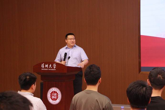 At the beginning of the lecture, Wang Lei, the dean of the School of Materials Science and Engineering, introduced the two guests in detail to the teachers and students present. Liang Shangying, currently the general manager of Shenzhen Baoshan Mingshui Industrial Co., Ltd. and the supervisor of Shenzhen Shandong Chamber of Commerce, has been awarded the Second-Class Merit and the Third-Class Merit. Qiu Yinglin was invited by the Veterans Affairs Bureau of Bao 'an District and Xin 'an Sub-district to serve as a lecturer for the patriotic education propaganda team and was also awarded the Second-Class Merit.