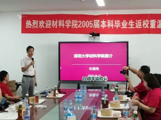 On the occasion of the 42nd anniversary of Shenzhen University, the College of Materials Science and Engineering held a grand alumni homecoming symposium, specially inviting alumni of the class of 2005 to return to their alma mater and share their friendship. Chen Yunfei, Director of the Student Affairs Office, Lin Danfeng, Director of the Logistics Support Department of Shenzhen University and an alumnus of the 2005 graduating class, Zhu Deliang, vice Dean of the College of Materials Science and Engineering, Li Xiaoping, Deputy Secretary of the Party Committee, Xie Shenghui, Teacher Cao Peijiang, Faculty Member Liu Wenjun and other class advisors of the 2005 class jointly received the alumni who returned to school and participated in the exchange and discussion together.